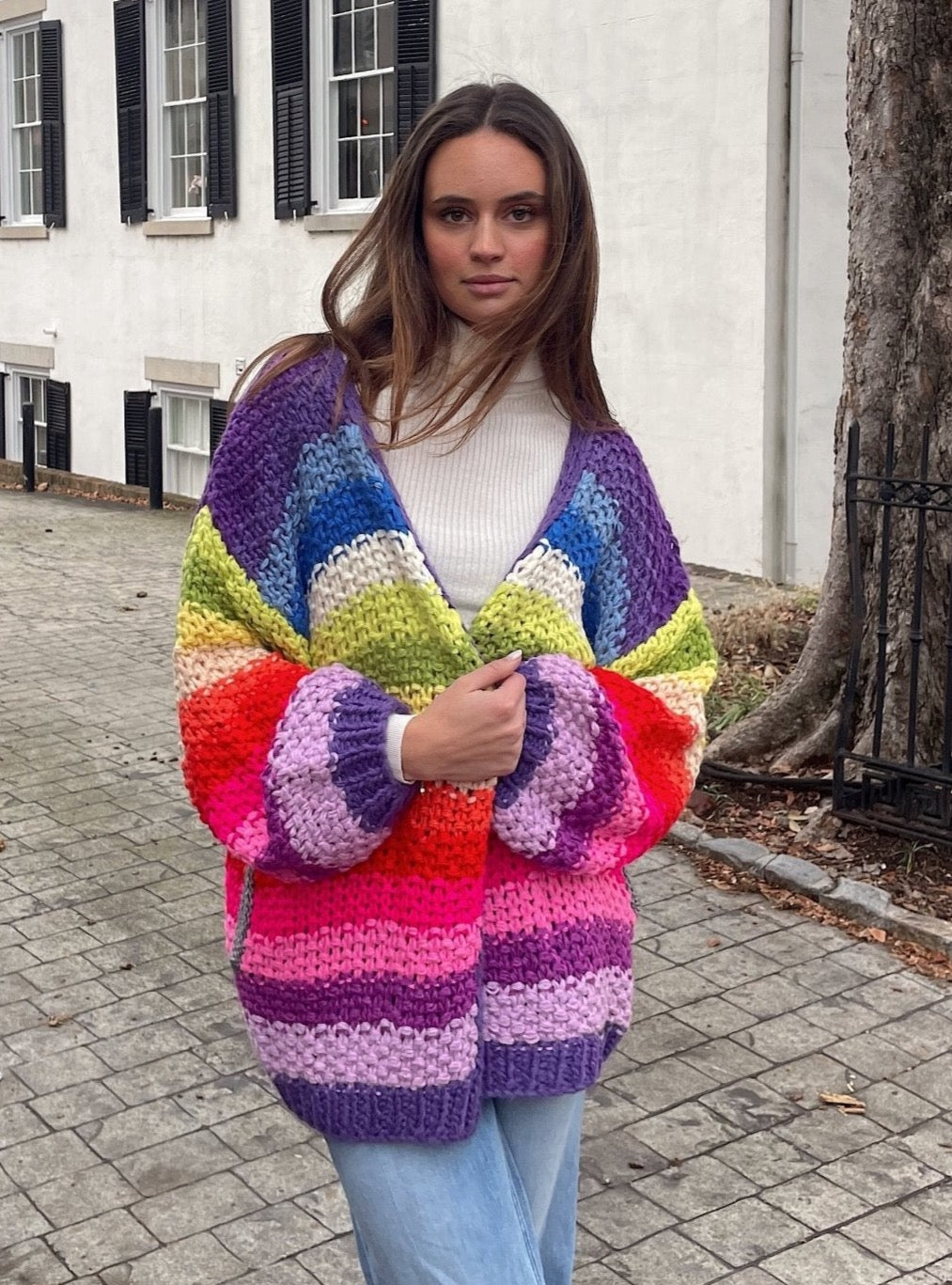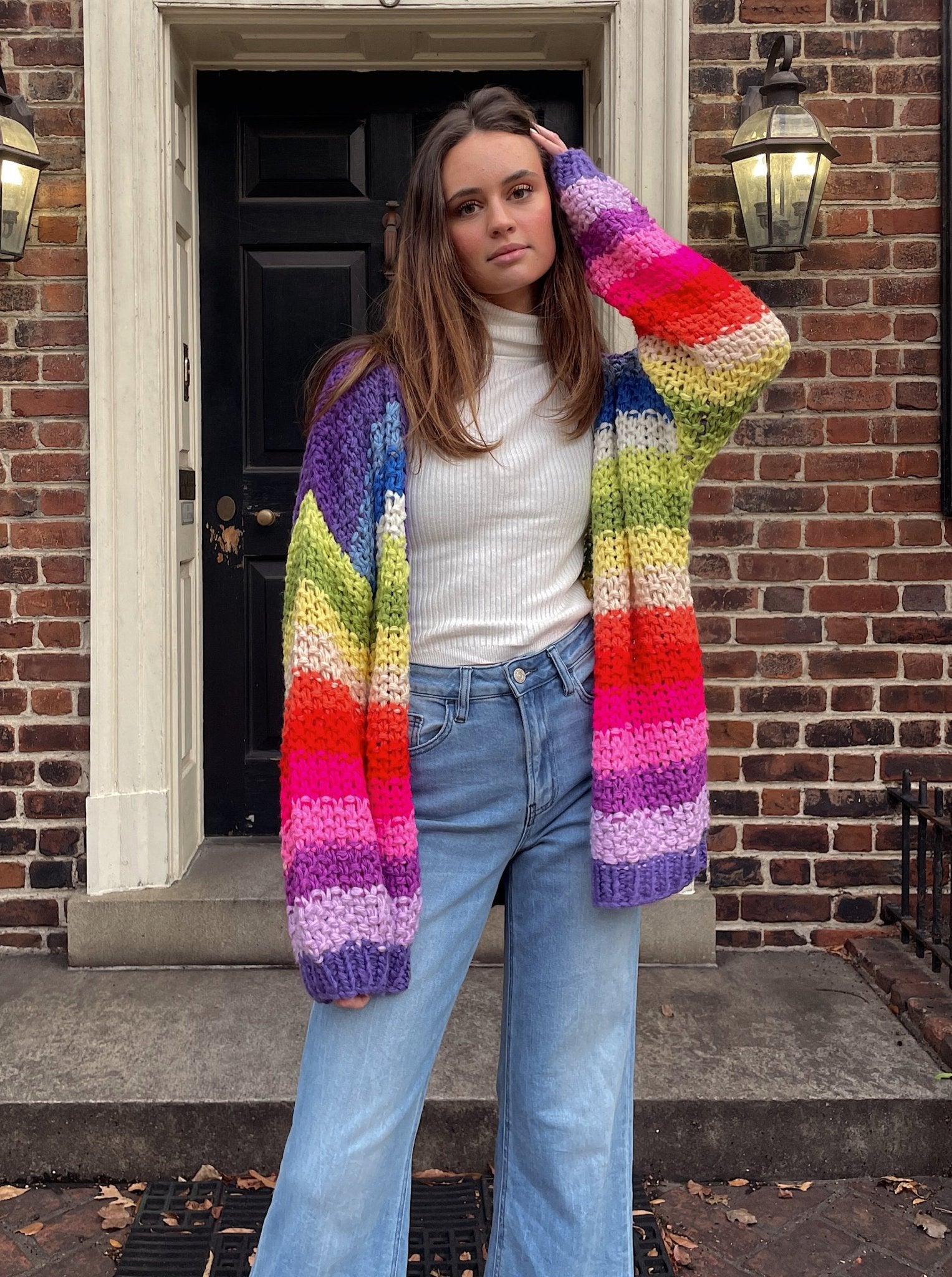 A stunning and unique addition to your wardrobe that showcases the artistry of hand crochet and adds a burst of vibrant colors to your look. This cardigan features a beautiful hand crochet design in a variety of colors, creating a truly eye-catching and one-of-a-kind piece.